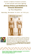 • Áccents on Eglinton Bookstore presents… A book launch and book signing of "African Police and Soldiers in Colonial Zimbabwe", by Tim Stapleton, to be held Saturday, November 19, 2011, 7:00pm, at Áccents on Eglinton Bookstore. Tim Stapleton is Professor of African History with a special interest in Southern Africa and Zimbabwe, and is also Director of the History Masters…